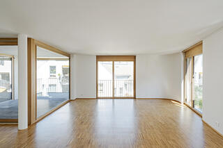 Die Statik des Neubaus mit seiner tragenden Fassade und nur vier räumlichen Stützen sowie einem Treppenhaus im Kern maximiert das Nutzungspotenzial und ermöglicht eine hohe Flexibilität auch noch in vielen Jahren. Ein hofseitiges Gefälle wird optimal ausgenützt und erlaubt attraktive Lichtverhältnisse auch in den unteren Räumlichkeiten, welche zum Beispiel als Wohnungen mit Galerie oder als einzelne Büros genutzt werden können.