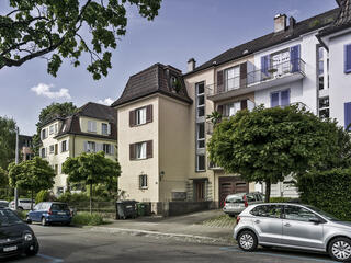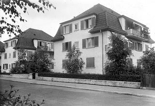 “Compared to his earlier SIM building, at first glance Wilhelm Fischer’s first big commission the housing development completed in 1932 on Speerstrasse in Zurich Wolllishofen, looks like a step backwards in formal terms. With the neo-Baroque hipped mansard roofs Wilhelm Fischer gave the apartment houses a dignified, conservative bourgeois character, but the windows of different sizes, the balconies and loggias indicate his interest in new forms.”