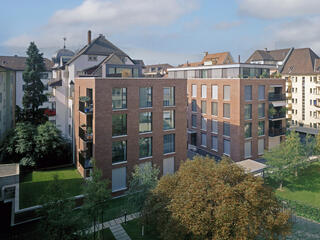 The facades are characterised by uniform floor-to-ceiling windows that ensure good natural lighting. The fenestration of the higher plinth storey resembles that of the upper floors. However, two shop windows at the corner of Schöntalstrasse and Werdgartengasse represent a departure from this principle. The external brickwork skin fits in well in this district. The main balconies of the apartments are designed as niches protected from the wind, while the roof level apartments have large terraces. In the interior only few of the walls are load bearing, which ensures a high level of flexibility.